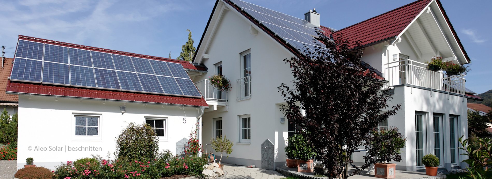 Photovoltaik-Anlagen wandeln die Sonnenstrahlung mittels Solarzellen in elektrische Energie um. Der gewonnene Strom wird in erster Linie selbst genutzt oder direkt im eigenen Haus gespeichert, die überschüssige Energie wird dem öffentlichen Netz zur Verfügung gestellt (eingespeist*). Je größer Ihr Eigenverbrauchsanteil des Solarstroms ist, desto mehr steigt Ihre Rentabilität, da Sie sich als Betreiber der Photovoltaik-Anlage den Strombezug vom Energieversorger sparen.